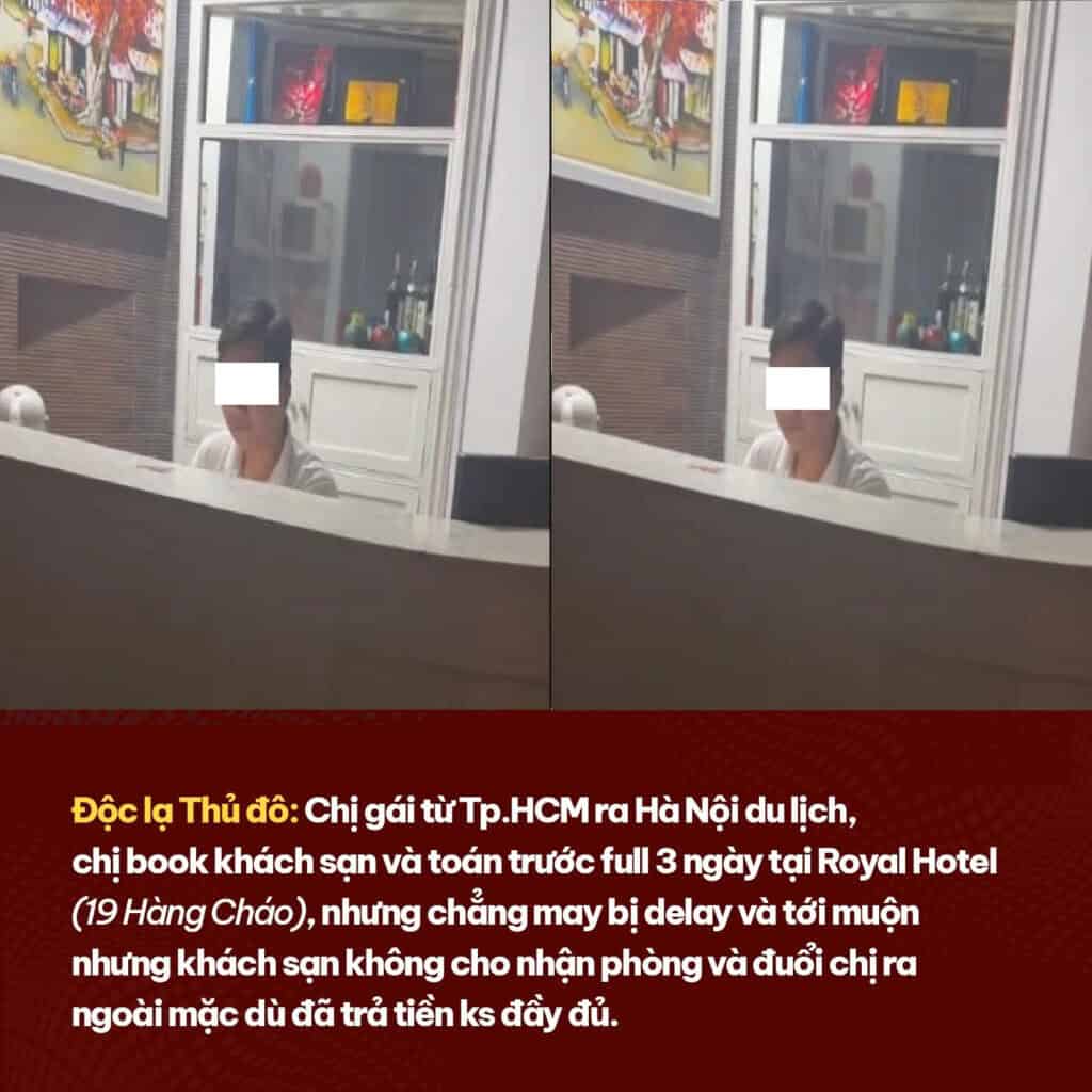 Vụ việc liên quan tới một nữ du khách đặt phòng qua ứng dụng tại khách sạn Royal Hotel tại địa chỉ 19 Hàng Cháo thuộc phường Ô Chợ Dừa (Hà Nội) nhưng bị từ chối nhận phòng dù thời gian đặt phòng còn hiệu lực, thu hút sự quan tâm của dư luận.